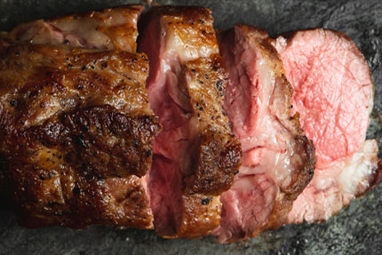 実はヒレ肉もいくつかの部位位置(パート)に分かれています。業界用語で「バット(Butt)」と呼ばれる ヒレの太い側(付け根側)、「センター(Center)」と呼ばれる中間部で形が安定した箇所、「テール(Tail)」と呼ばれる先端部(細い部分) の繊細な箇所、最後に「サイドマッスル(Chain)」。この規格はその中でも最も美しくい形状が整い、火入れに最も適した「センター」と「テール」のみ厳選した特別規格。バットとサイドマッスルを除いたことで、下処理や整形の手間も最小限。仕込みロスが極めて少ないのも魅力。ソテー、低温調理、炙り、タルタル、繊細な調理から大胆な演出まで自在に対応。特別扱い出来る、まさにラグジュアリーな仔羊ヒレ肉です。(5〜6本入り)。希少なロアリング・フォーティーズ・ラム(Roaring Forties Lamb)のヒレ肉でご案内中!少量2本単位で楽しみたい方はこちら