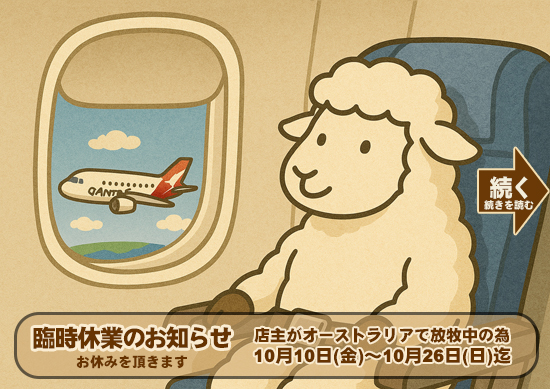 【臨時休業のお知らせ】10月9日(木)16時から10月26日(日)は海外出張の為に臨時休業となっております(実店舗含む)。出荷等は休み明けの通常営業日10月27日(月)より再開致します事を何卒ご了承下さいませ。